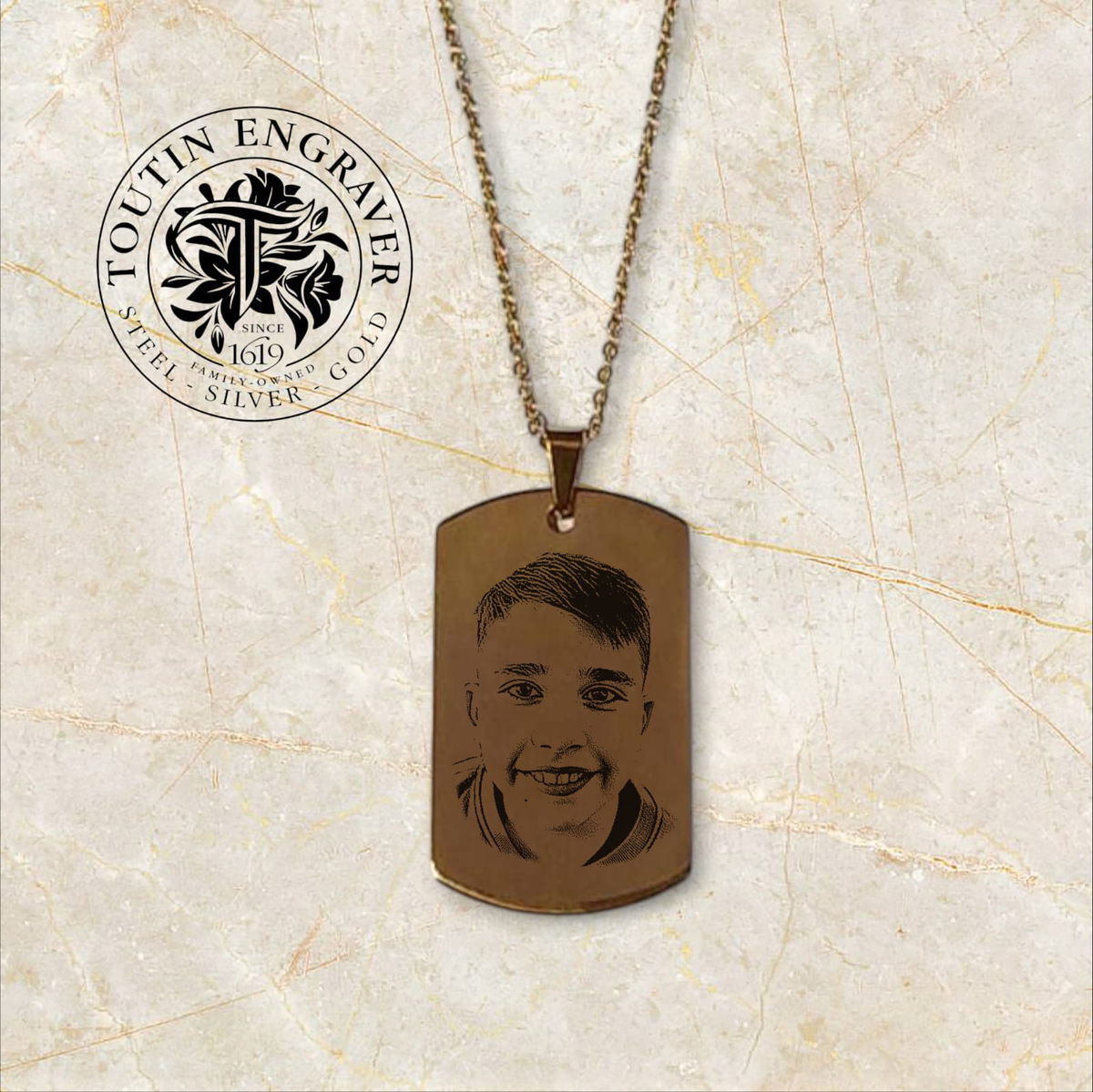 Medalla Acero Dorado Rectangular 42x24mm con Cadena Forcé 45cm