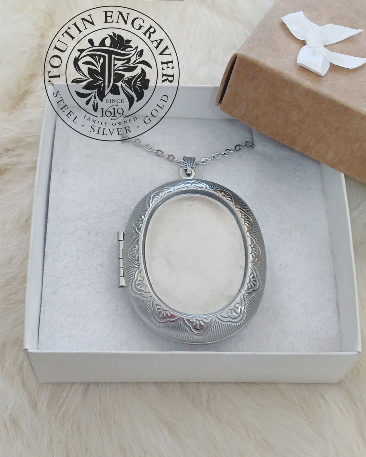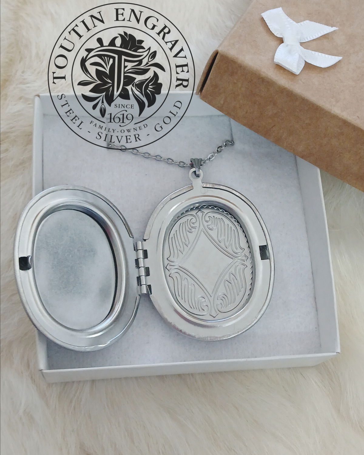 Fotorelicario Acero Quirúrgico Ovalado Diseño 40x35mm