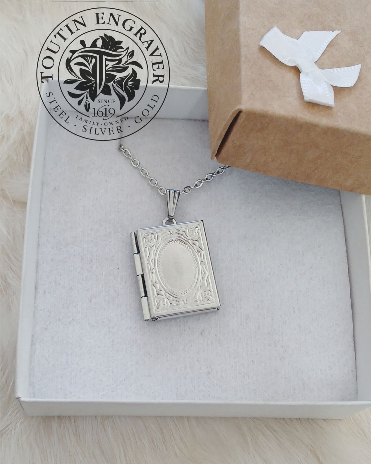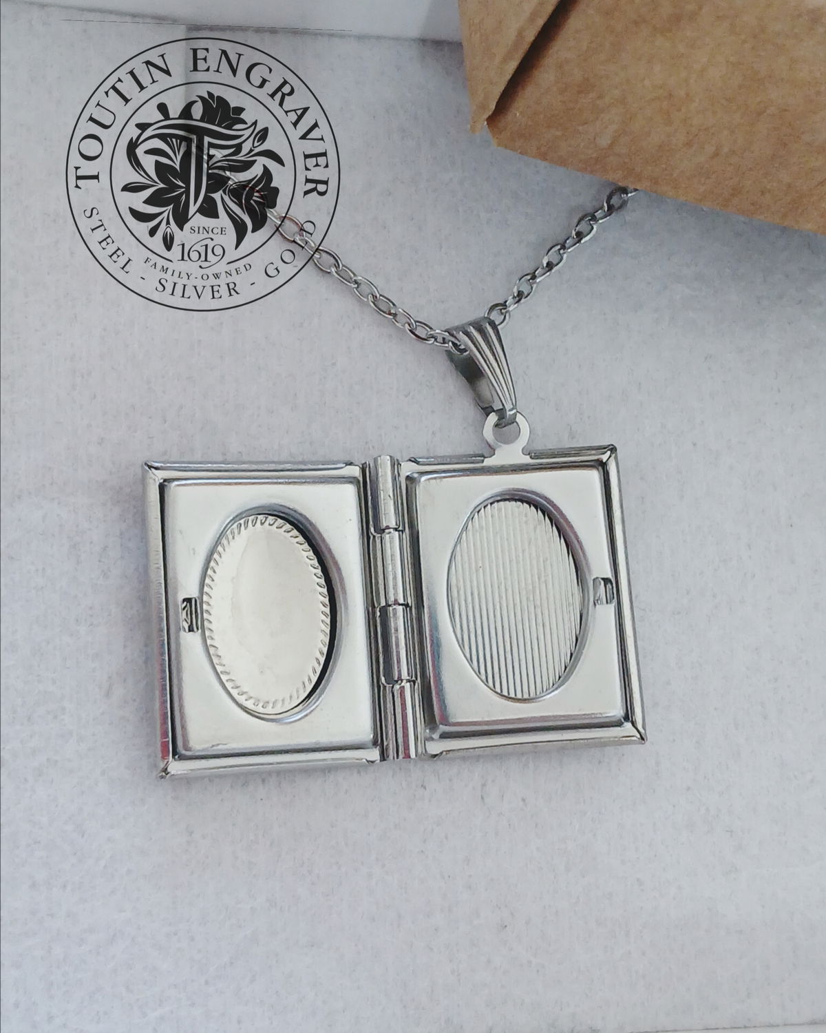 Fotorelicario Acero Quirúrgico Libro Diseño 24x16mm