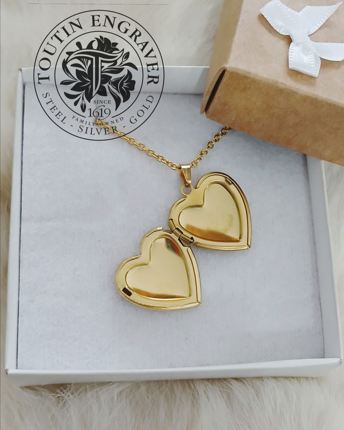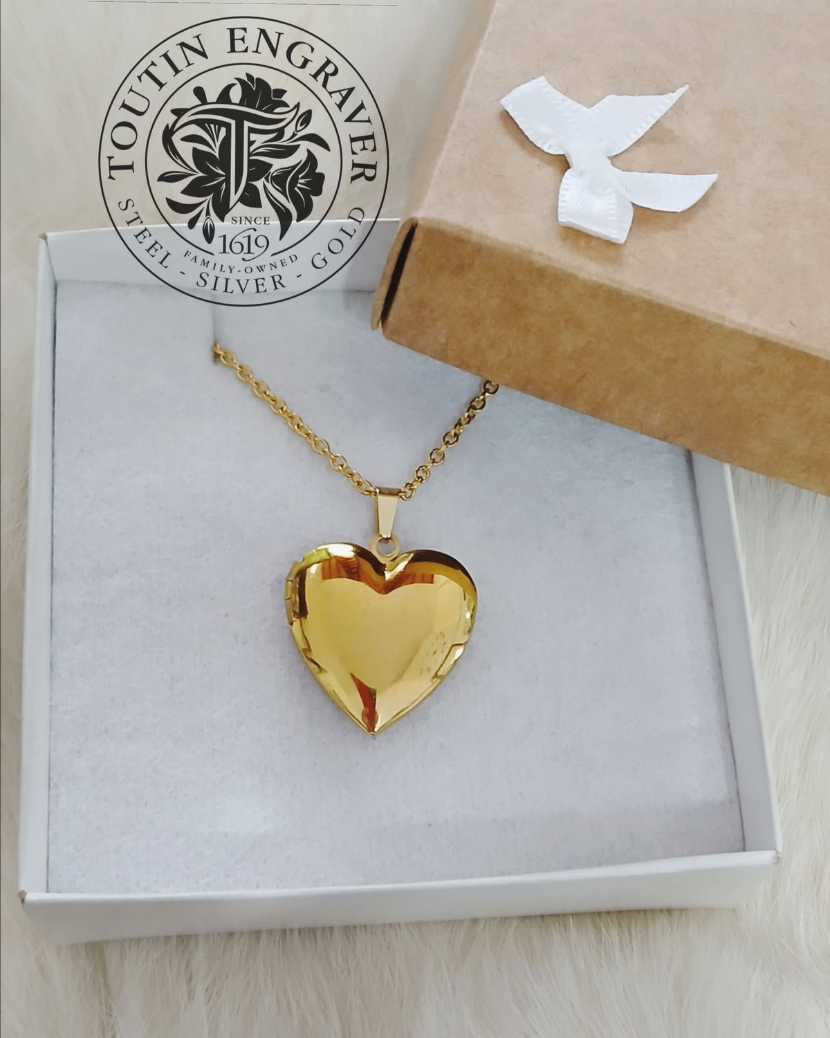 Fotorelicario Acero Quirúrgico Dorado Corazón Liso 23x23mm