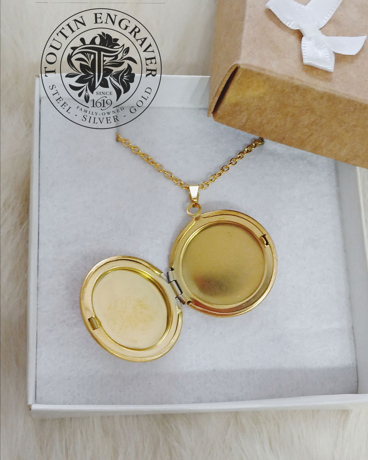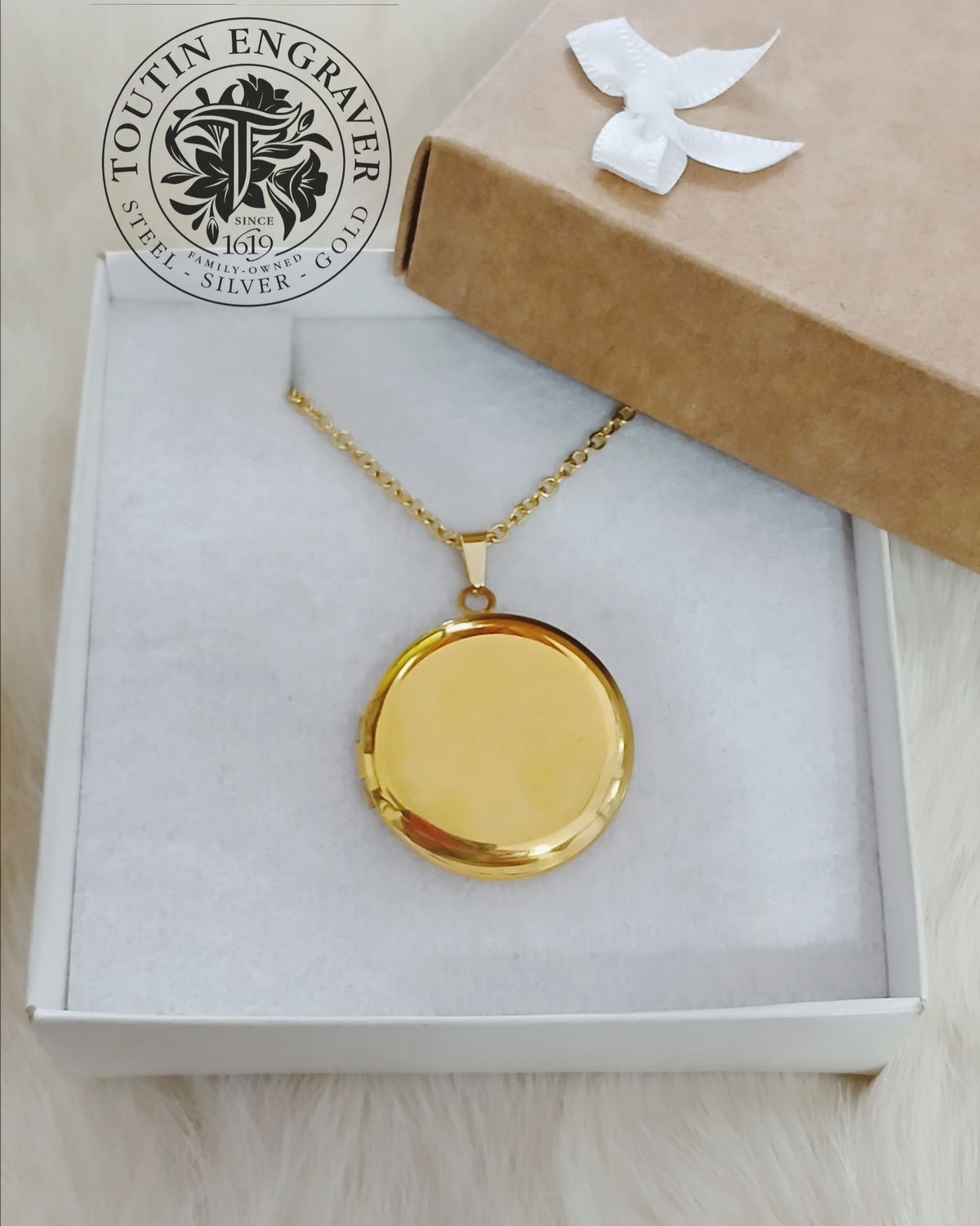 Fotorelicario Acero Quirúrgico Dorado Redondo Liso 28mm